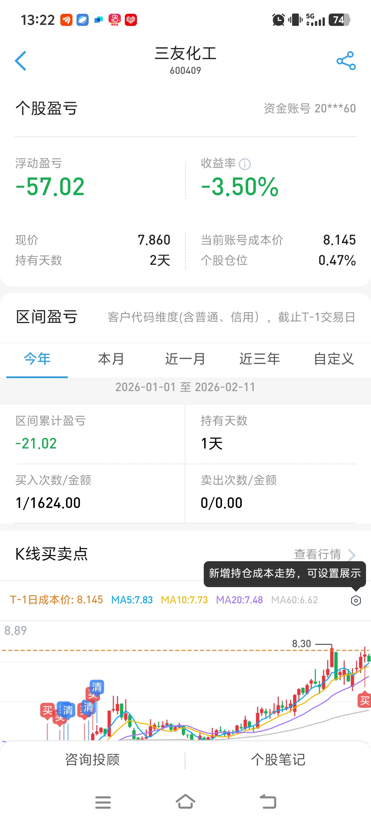 $三友化工(SH600409)$ 我昨天买崩的哈哈哈