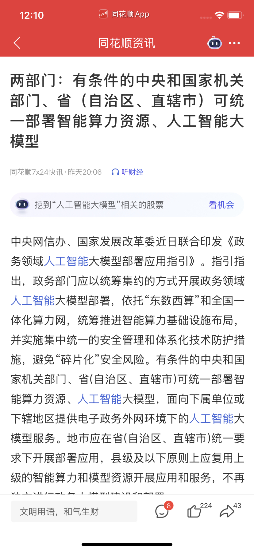 $华胜天成(SH600410)$ 重大利好国家支持国家算力