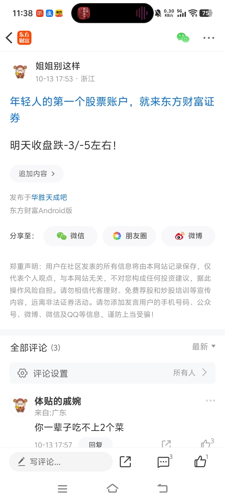 温馨提示: 1.根据《证券法》规定,禁止编造、传播虚假信息或者误导性信息,扰乱证券市场;2.用户在本社区发表的所有资料、言论等仅代表个人观点,与本网站立场无关,不对您构成任何投资建议。用户应基于自己的独立判断,自行决定证券投资并承担相应风险。《东方财富社区管理规定》