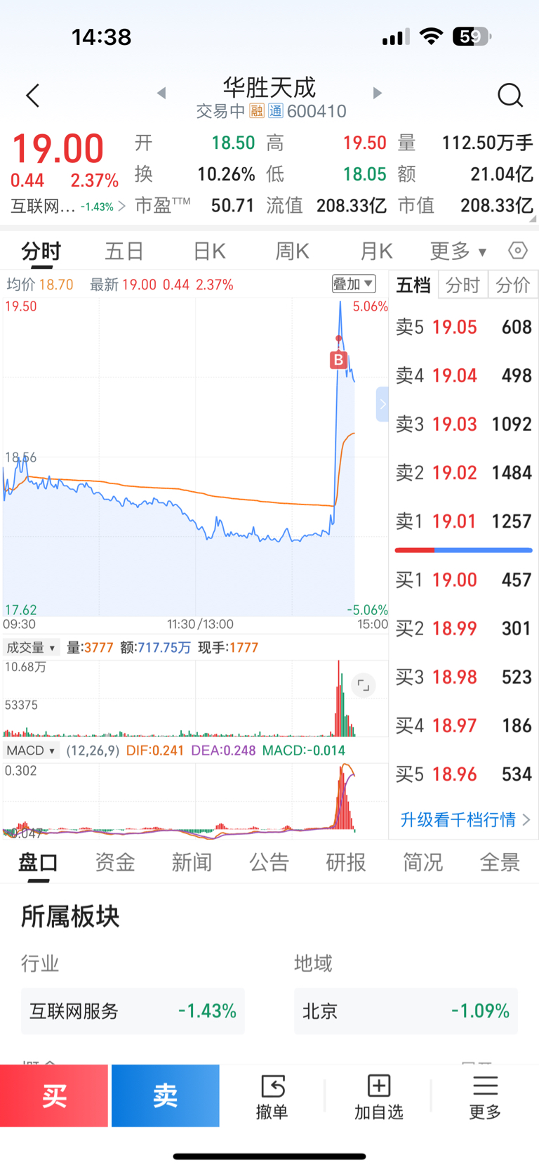 $华胜天成(SH600410)$ 19.2进的 又被骗炮了