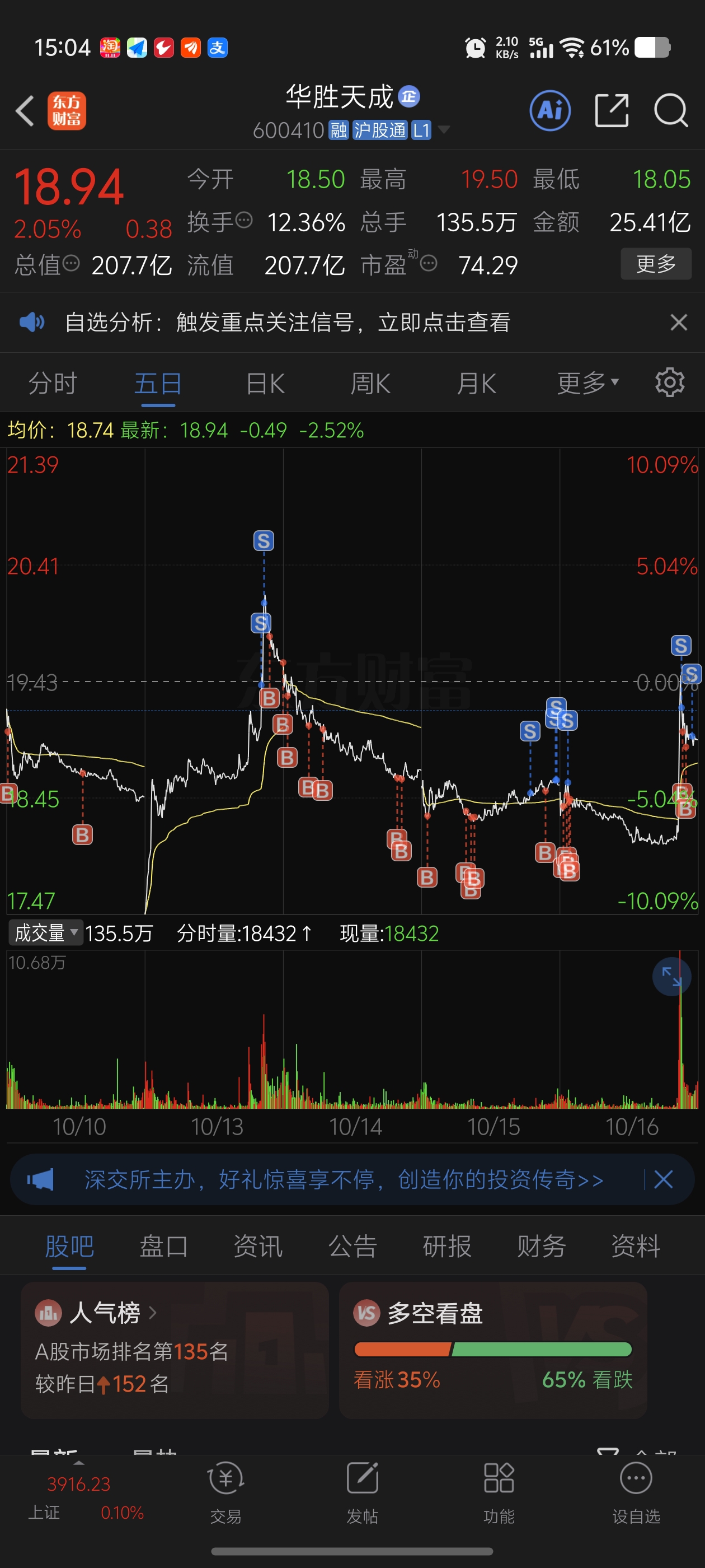 $华胜天成(SH600410)$ 23的本天天做T加仓,还亏一个点,希望明天拉个1个多点走人