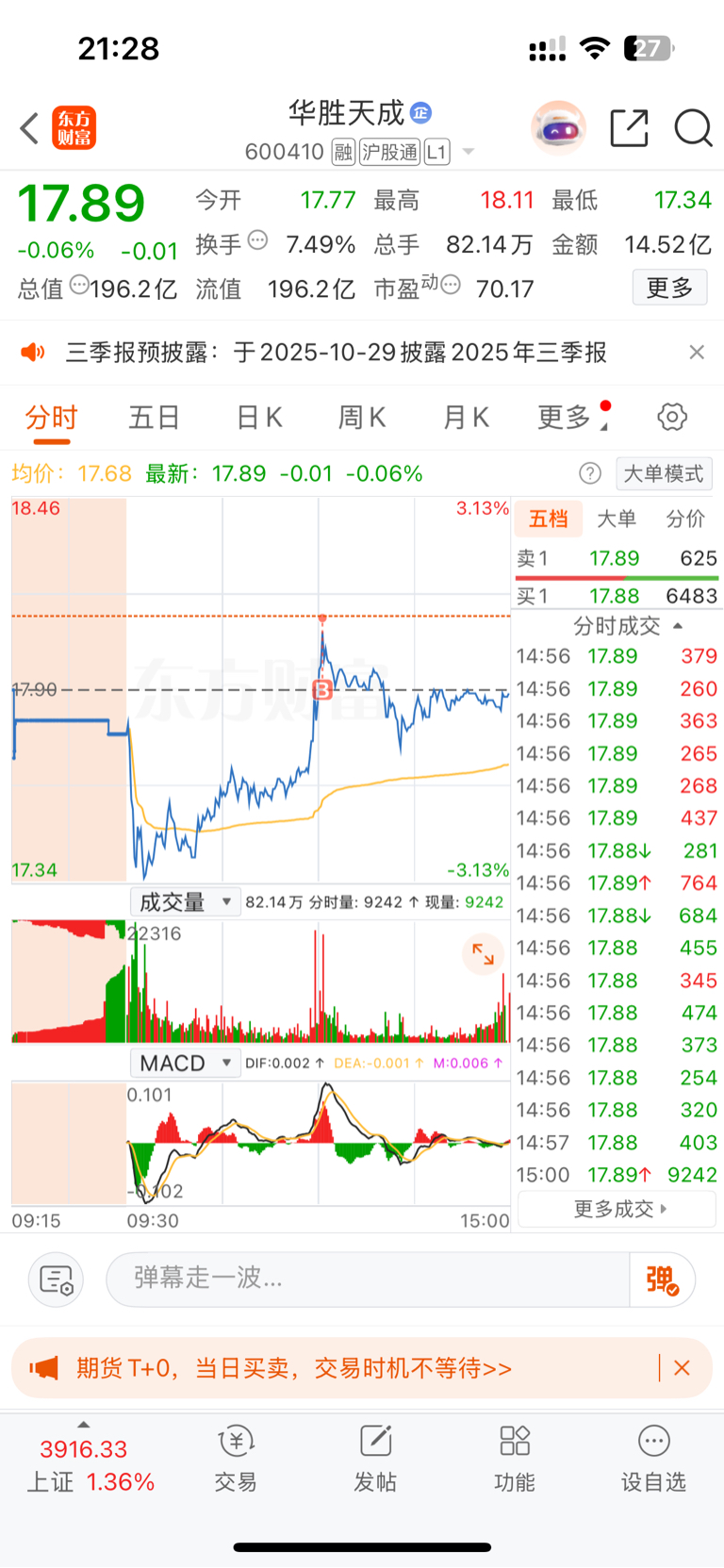 $华胜天成(SH600410)$ 18.11买在今天最高点