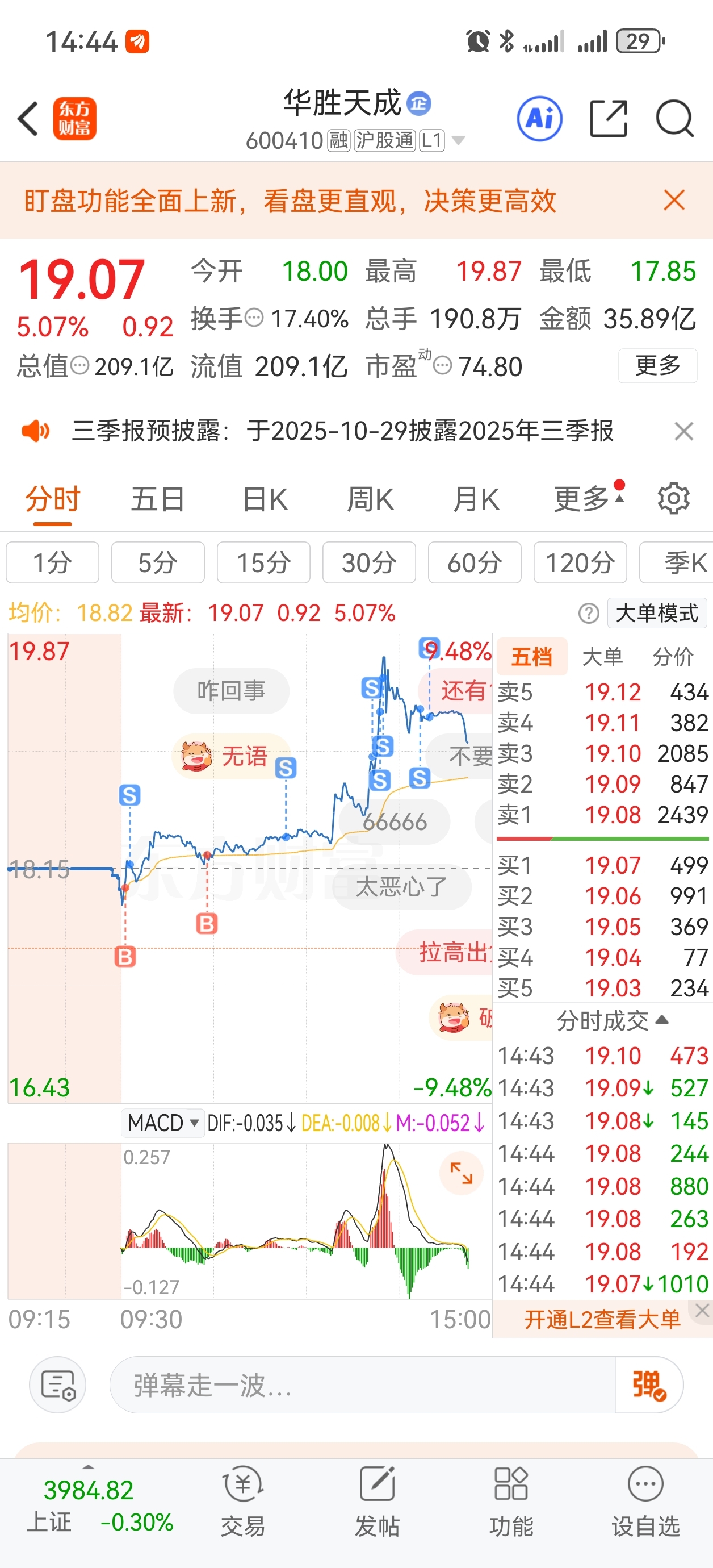 $华胜天成(SH600410)$ 有人欢喜有人愁,23进来,T来T去,今天回本赚一点走了,剩3000股随便你折腾了