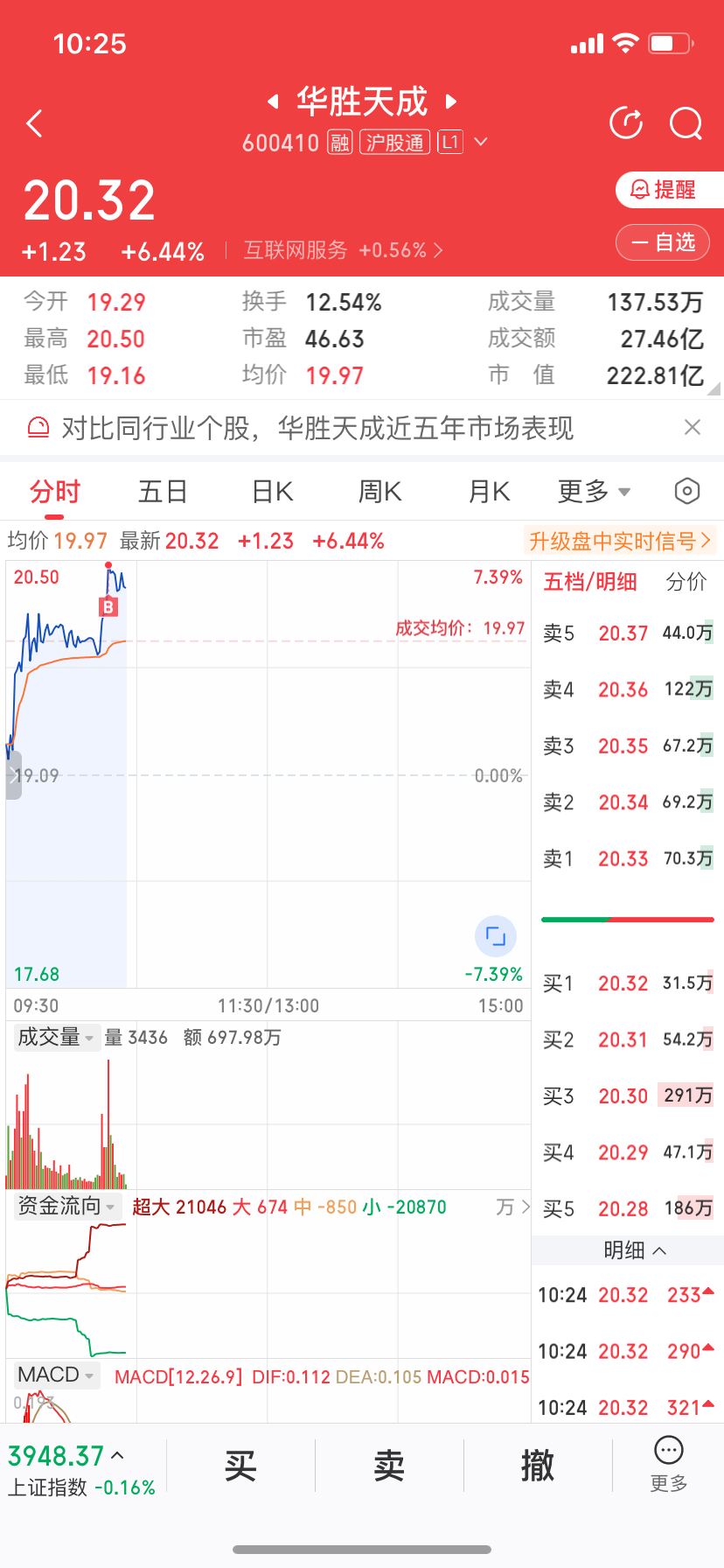 $华胜天成(SH600410)$ 最近亏太多了。一买就是山顶。20.50