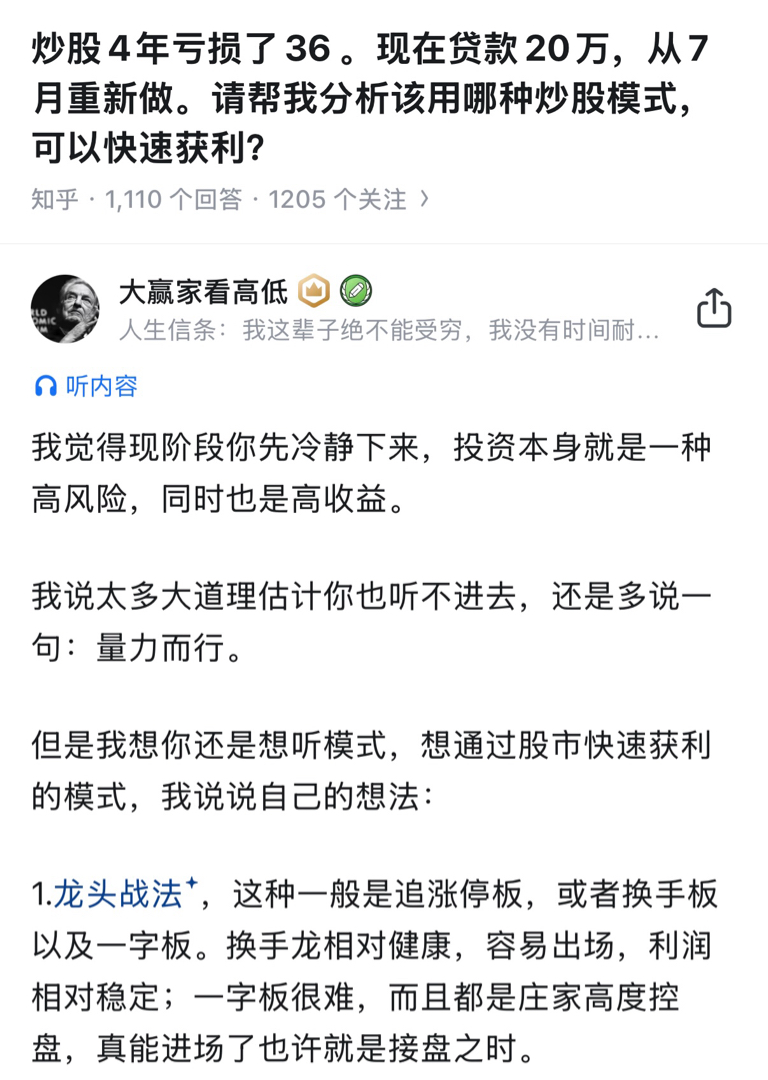记住玩它的方法:绿了就接,涨了就出点仓位,你一定不会亏。还有千万别借钱炒股,这是