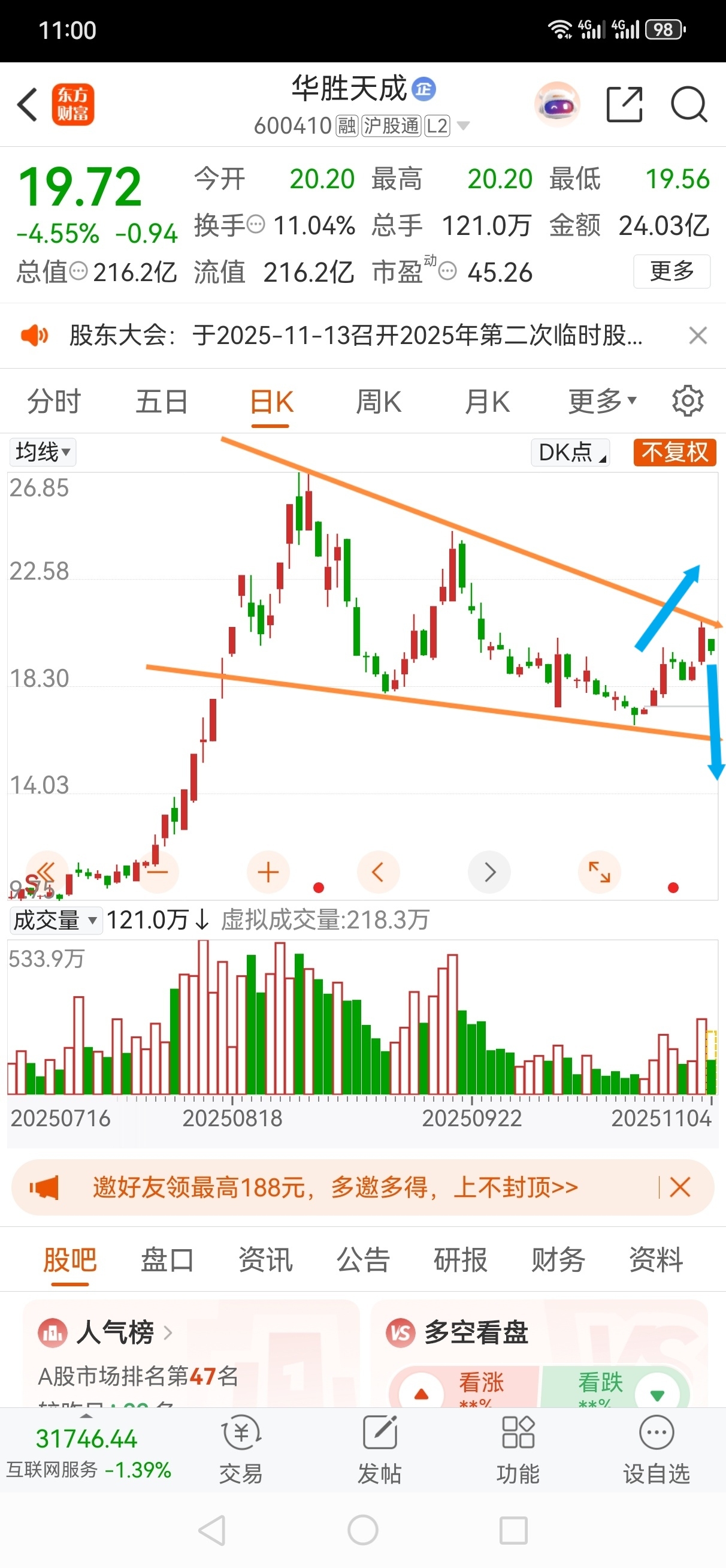 $华胜天成(SH600410)$ 向上冲就突破下降趋势;向下冲就进入调整阶段