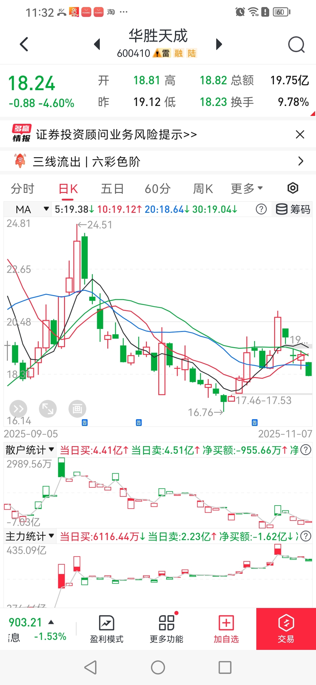 $华胜天成(SH600410)$ 经传多赢手机版数据短线王123元年费,关键是跟买跟卖专用量化的机构,不会看盘,他有经传多赢软件对他来说没有用,他的思维在跟领导性量化,注定不会涨。专用量化在对接一部分小单散户!散户T+1根本不可能突破的,散户T+0的话,这个量化才能能二次加仓吃货,不然就是拉不高。不可能突破的,控盘开盘价可以是大单,也可以是专用量化机构和量化庄