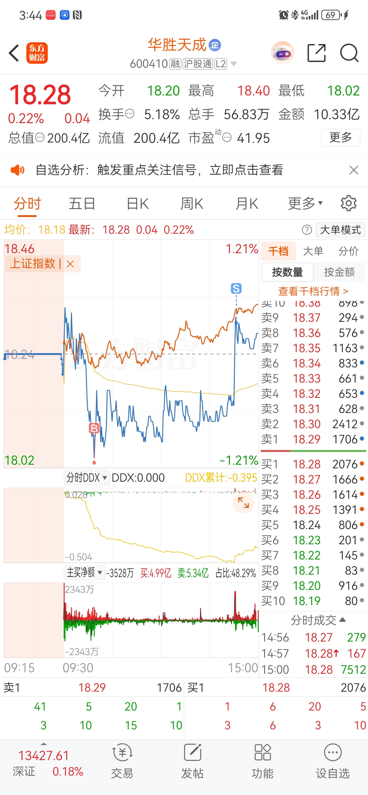 $华胜天成(SH600410)$ 今天做1000股的T,赚250伙食费,太难咯