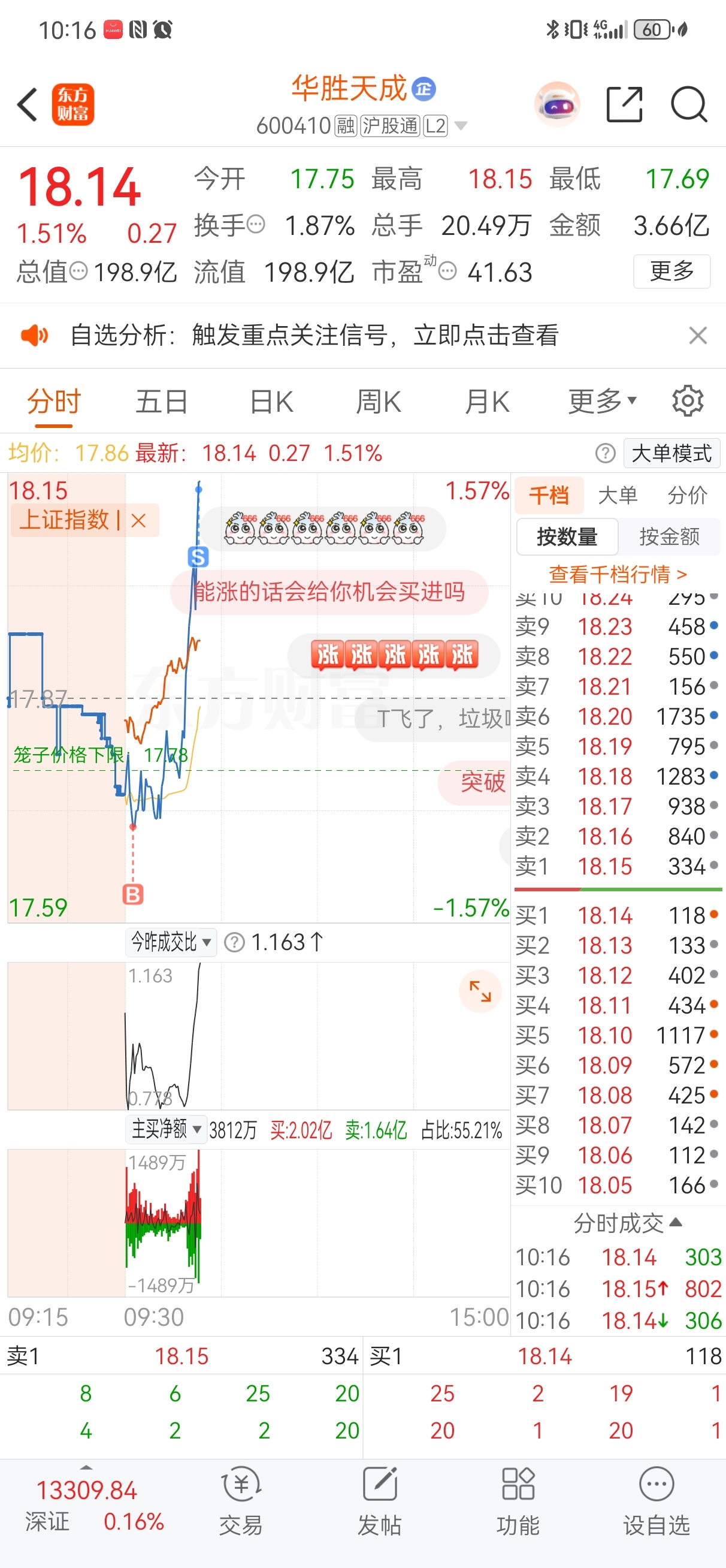 $华胜天成(SH600410)$ 很辛苦,今天1000股又赚了400块的生活费,这股太难了。