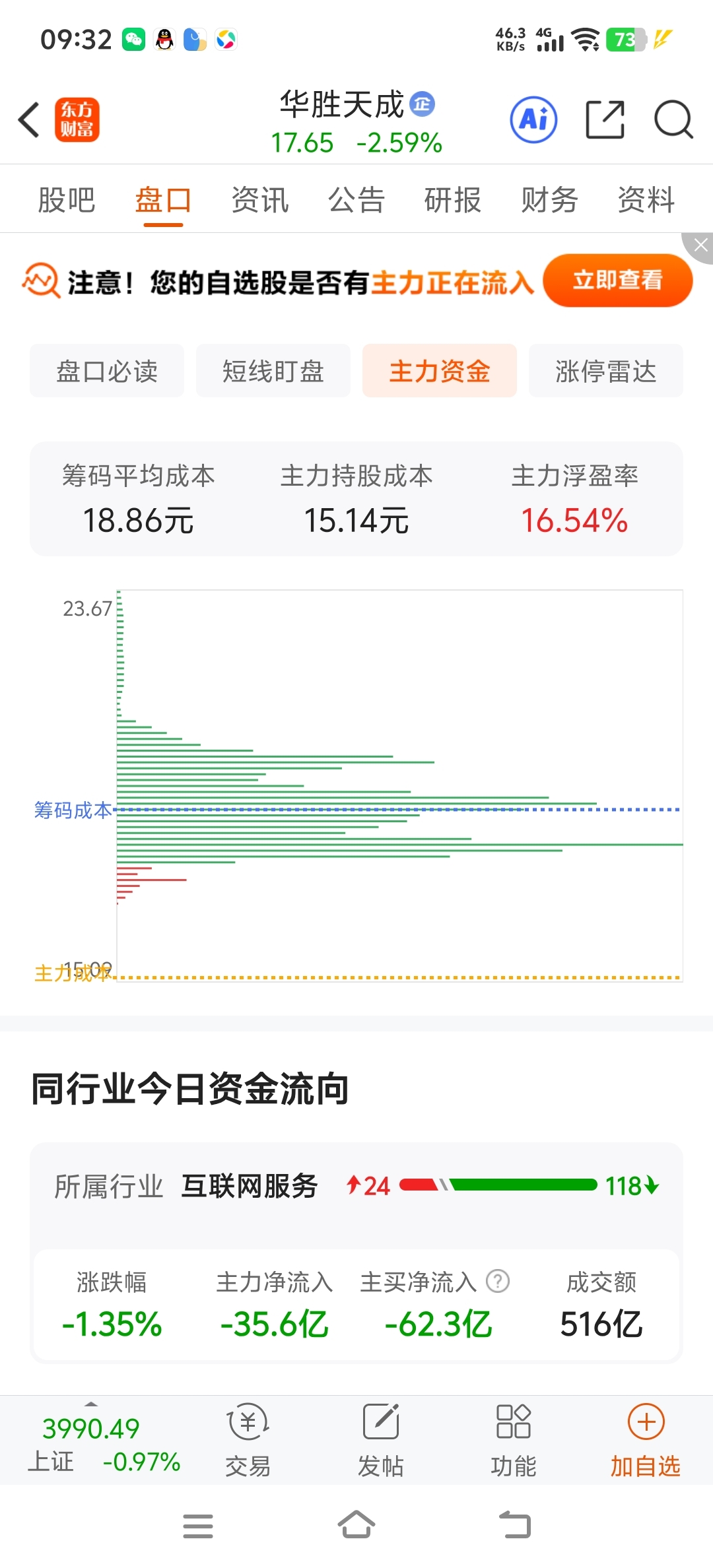 $华胜天成(SH600410)$ 主力筹码空荡 很危险了 都是散户了
