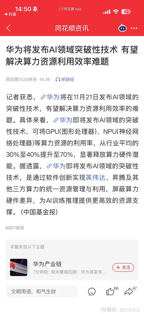 华为即将于11月21日发布AI领域的突破性技术,这一消息在算力产业引发广泛关注。据悉,该技术通过软件创新实现英伟达、昇腾及其他三方算力的统一资源管理与利用,可将算力资源利用率从行业平均的30%-40%提升至70%,显著释放算力硬件潜能。