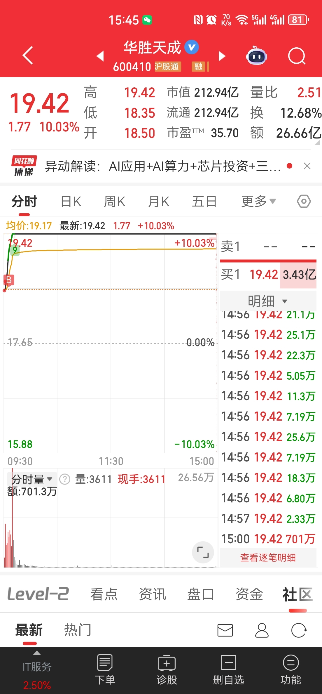 $华胜天成(SH600410)$ 低开就加仓,没有理由,市场就这样了,在哪赔不是赔。