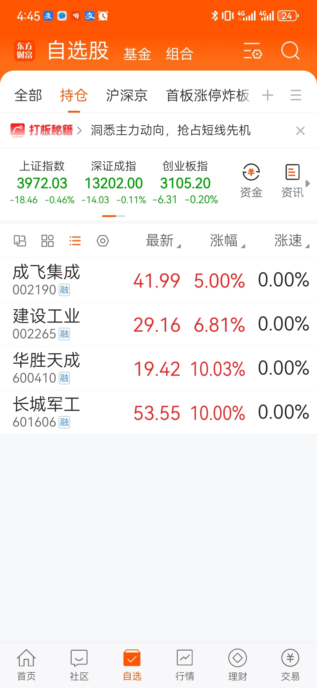 $华胜天成(SH600410)$ $建设工业(SZ002265)$ $长城军工(SH601606)$ 今天早上全仓军工了