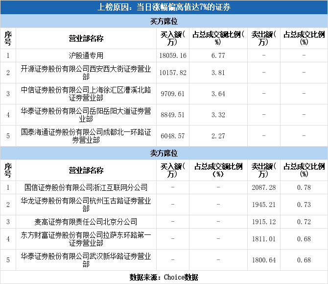 沪股通现身龙虎榜,华胜天成涨停(11-17)