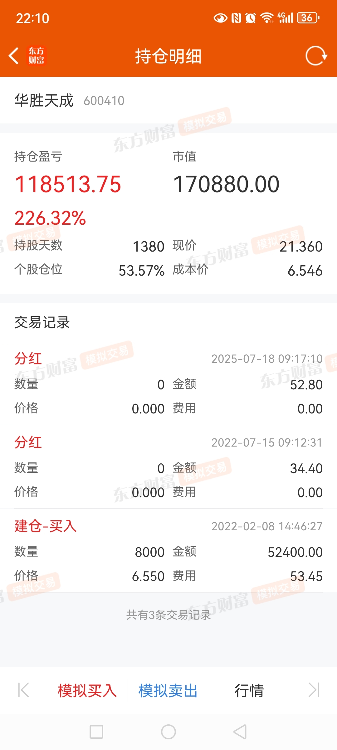 $华胜天成(SH600410)$ 实盘模拟盘一天买的,实盘挣了5个点跑了。