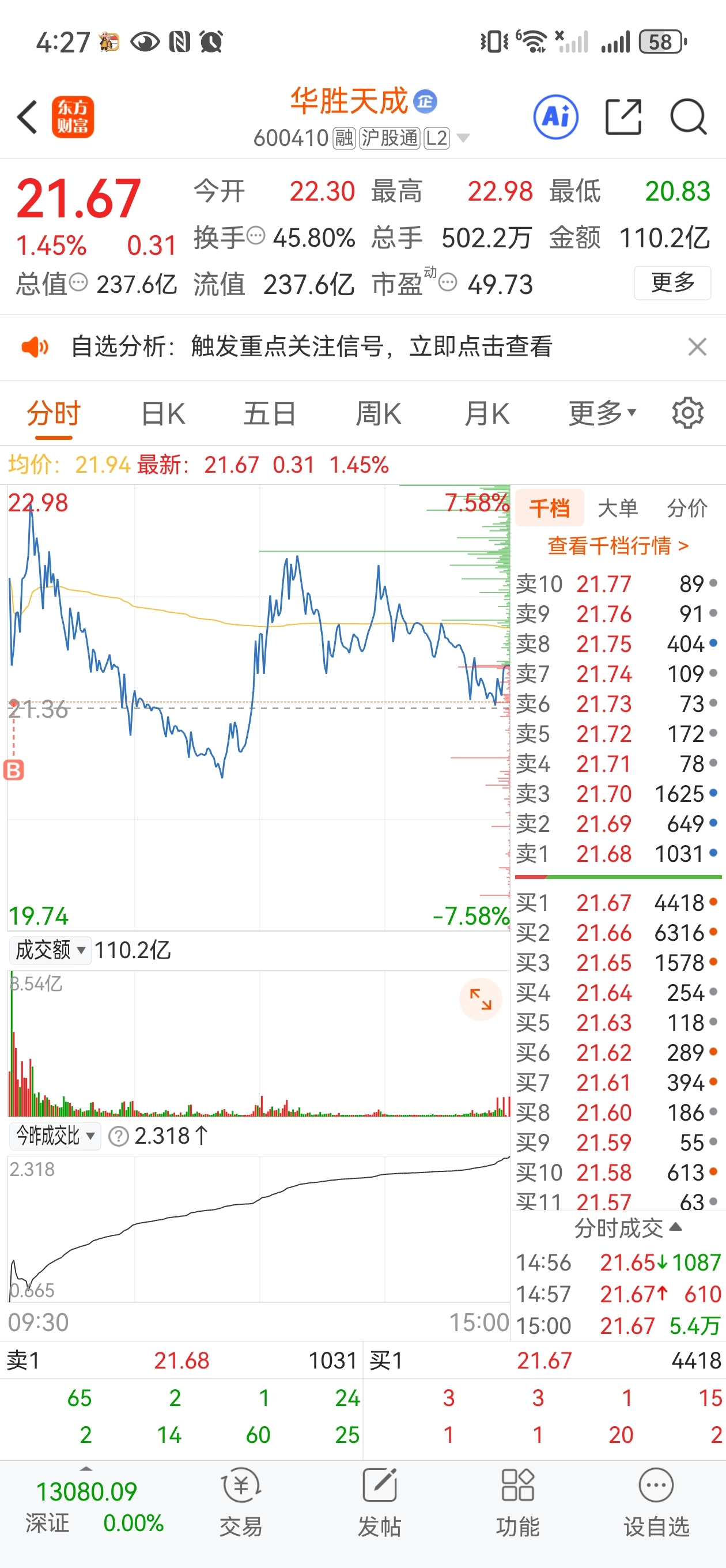 $华胜天成(SH600410)$ 我买的够刁钻了。没想到他还能绿了