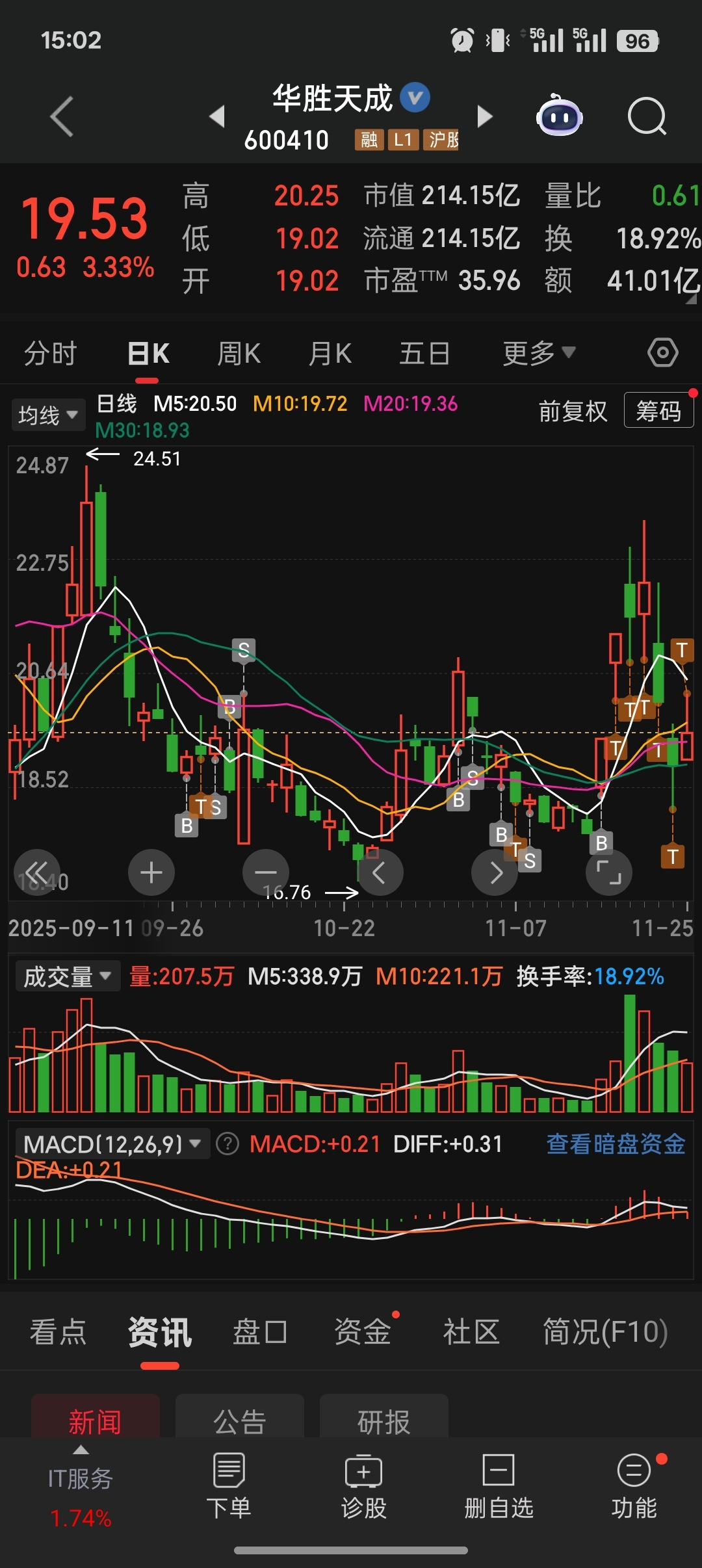 这几天做的t,成本已经降到比市场还低了,但是今天感觉不太对,上冲无力下来了,明天估计要低开,先减仓,明天低开再进,成本已经降到比市场还低了,我拿着应该不怕。目前成本16块钱。
