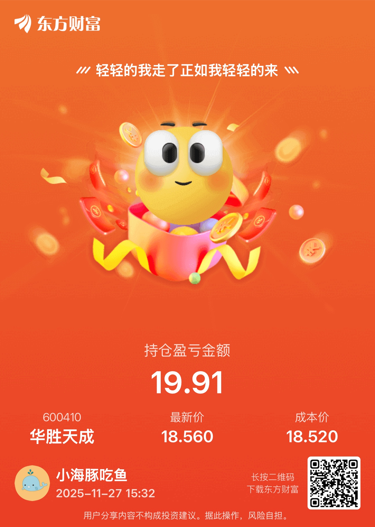 温馨提示: 1.根据《证券法》规定,禁止编造、传播虚假信息或者误导性信息,扰乱证券市场;2.用户在本社区发表的所有资料、言论等仅代表个人观点,与本网站立场无关,不对您构成任何投资建议。用户应基于自己的独立判断,自行决定证券投资并承担相应风险。《东方财富社区管理规定》