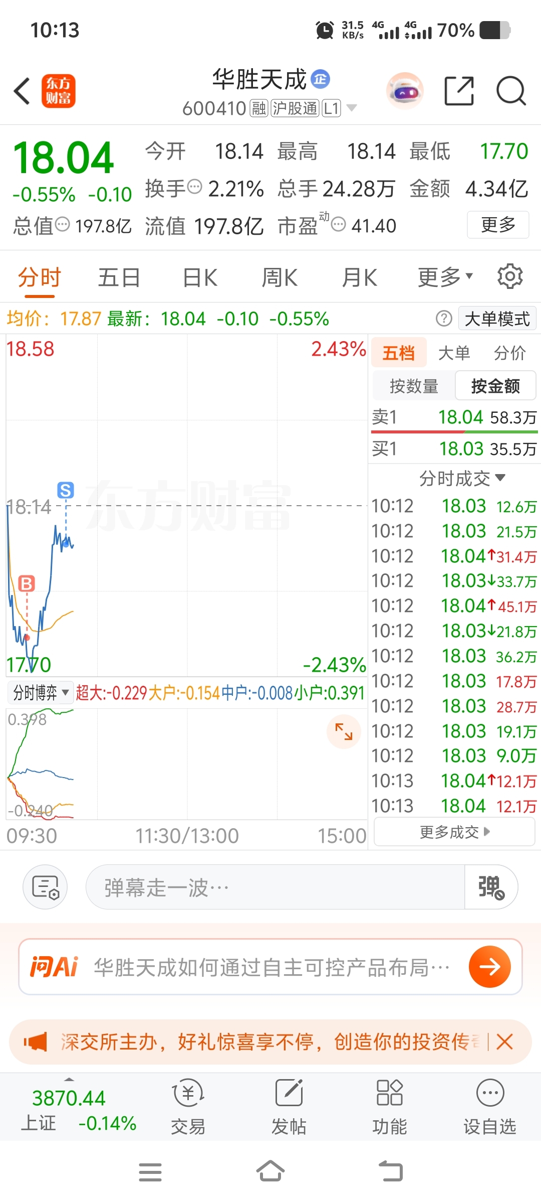 $华胜天成(SH600410)$ 也只能这样操作了!一会还会下来!