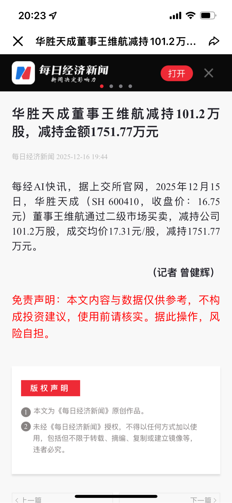 $华胜天成(SH600410)$