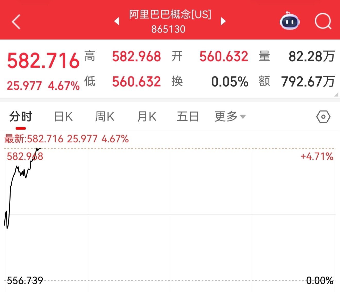 阿里巴巴概念us 晚上涨爆了。