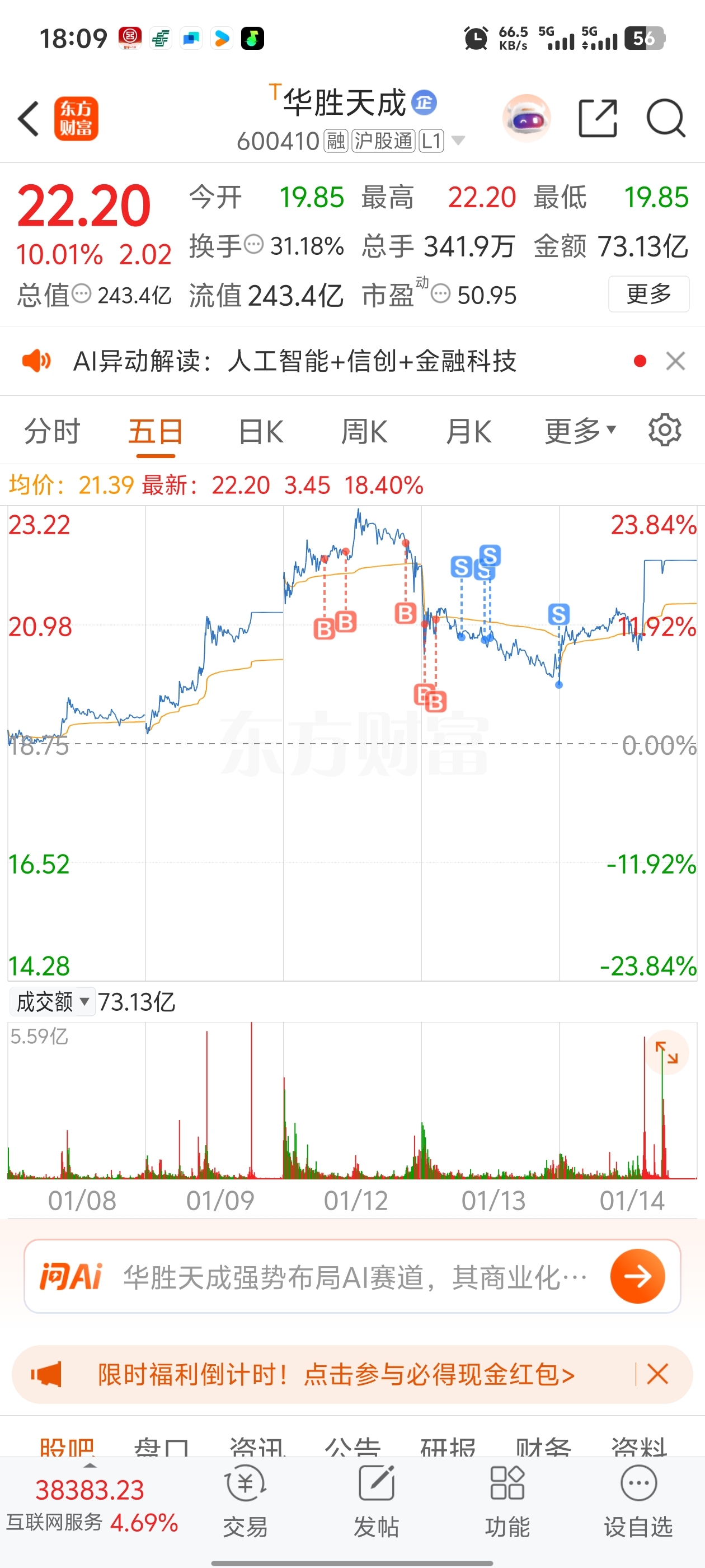 $华胜天成(SH600410)$ 群总,昨天你怎么不来