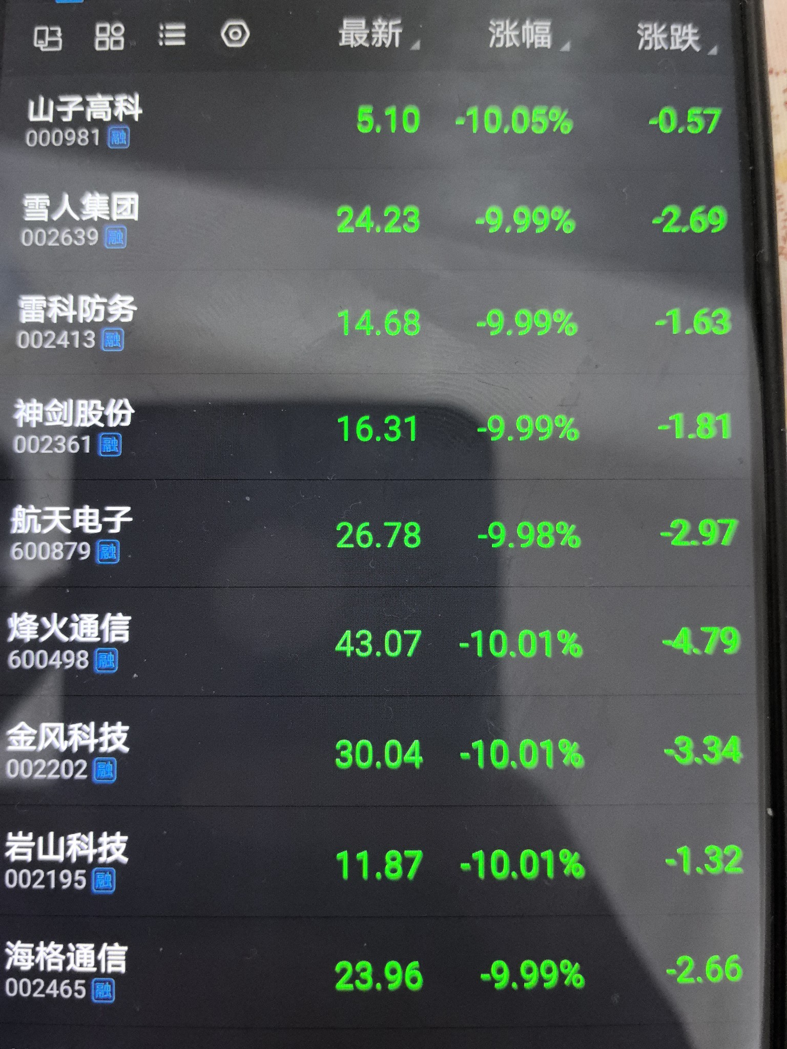 为什么不停牌华胜,我的全是绿色,出都出不来