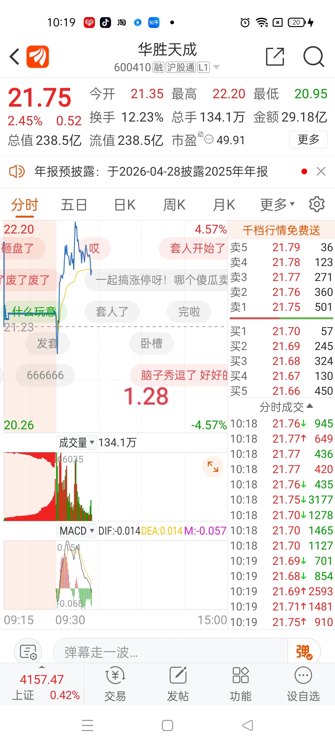 $华胜天成(SH600410)$ 竞价诱多,盘中走弱 今天一天没希望,韭菜们t起来,免得遭套