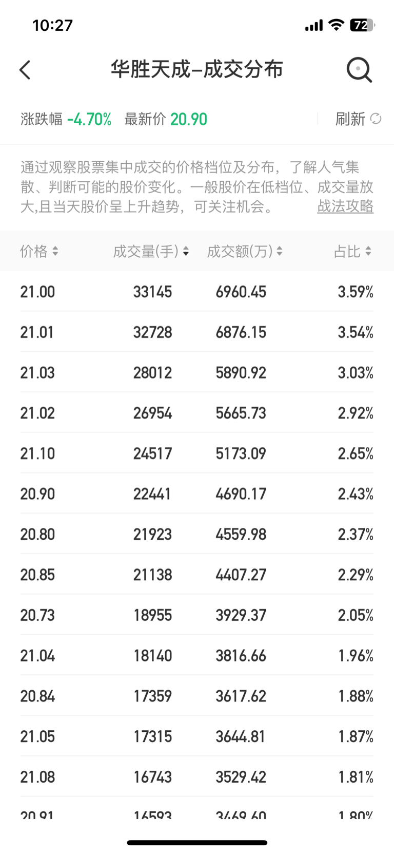 $华胜天成(SH600410)$ 开盘到现在成交密集区