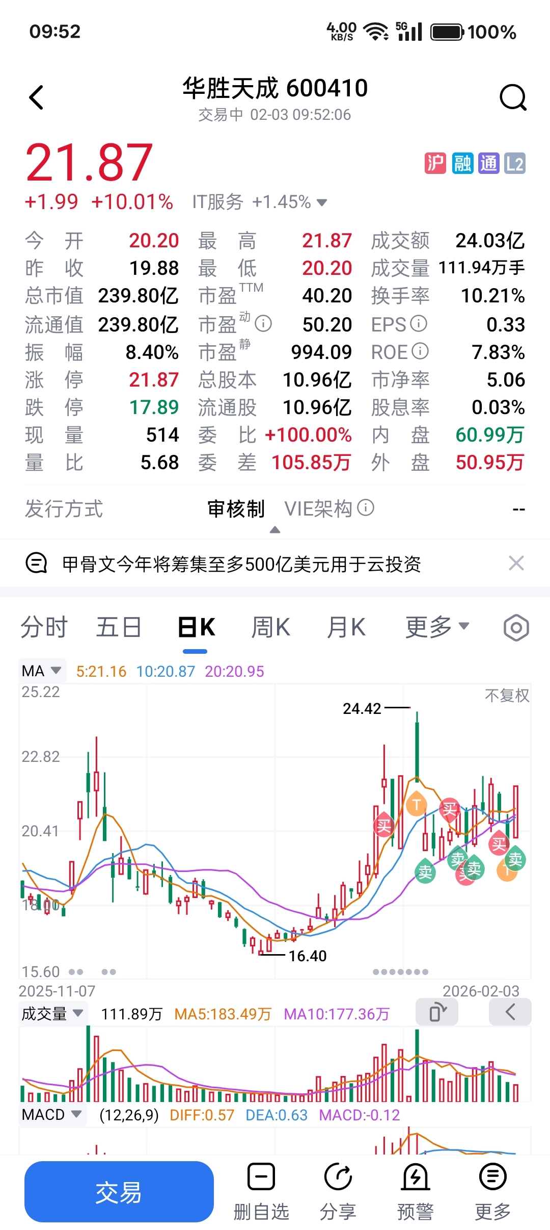 $华胜天成(SH600410)$ 快过年了胆子小,就做做自己认知以内的波动吧,看看能不能突破前高再考虑进来了