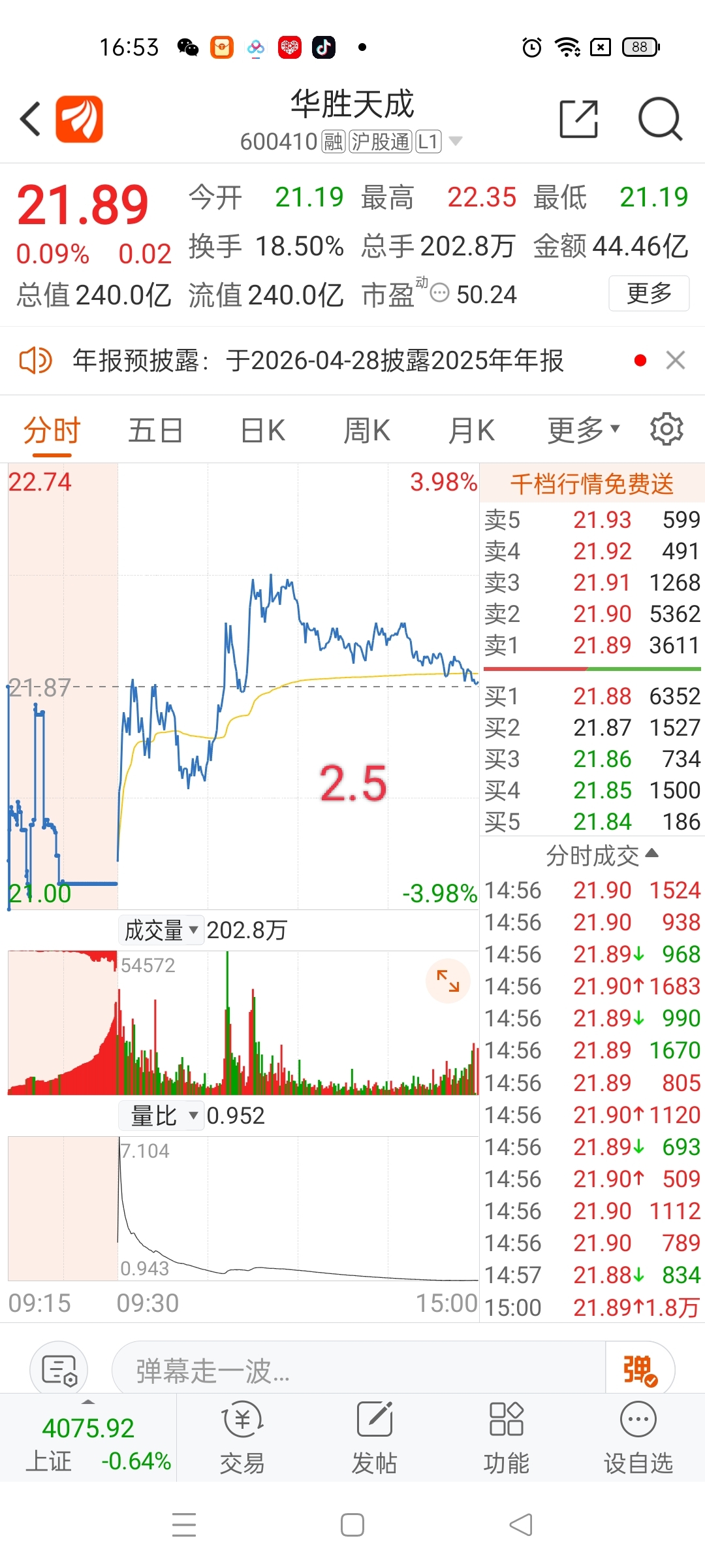 $华胜天成(SH600410)$ 2.5复盘,价格跳水下跌站不上均线,第二天多半也拉,主力第二天跳空高开,水下可加仓,水上应该卖出。明天应该有好的卖点,但是盘中横盘时间长,尾盘放量下跌不应该买进。明天应该是空方更强。铁韭菜的复盘