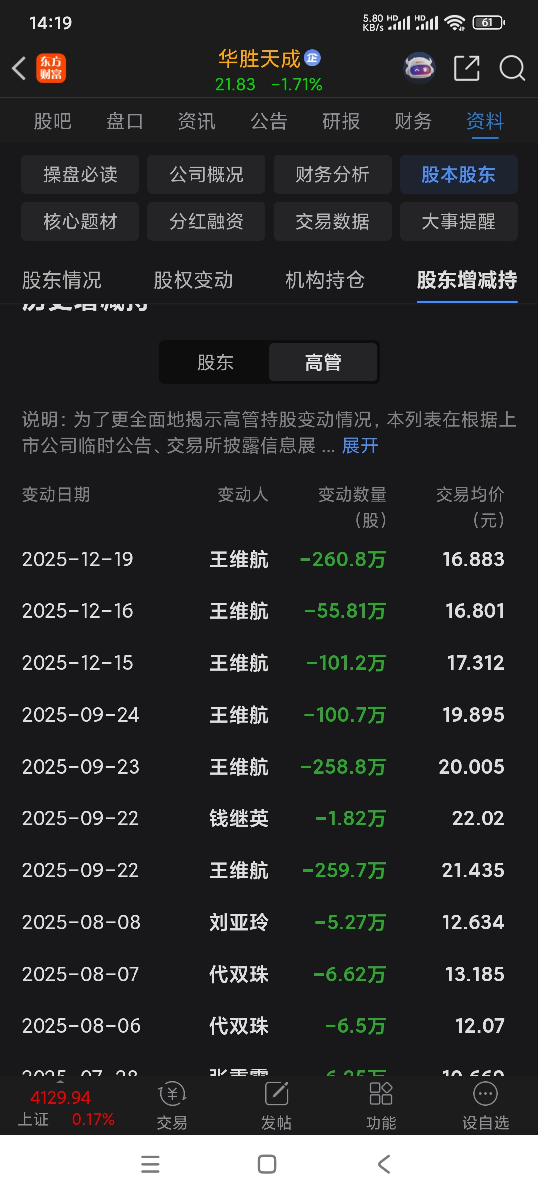 $华胜天成(SH600410)$ 董事长都大幅减持,能涨才怪