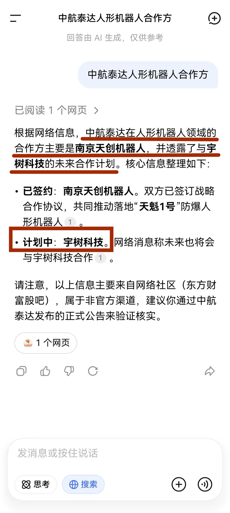 $华胜天成(SH600410)$ $中航泰达(SZ920263)$ 人形机器人领域,中航泰达是唯一“银河通用+天创机器人+宇树科技”三概念股,与银河通用合作已落地Galbot S1人形机器人,与天创机器人合作已落地天魁1号防爆人形机器人,公司回应计划未来与宇树科技合作,进一步聚焦做强机器人业务。消息捂的严实,春晚后才公布。在政策和热点加持下,明天资金可能要抢筹了,涨停是30厘米。