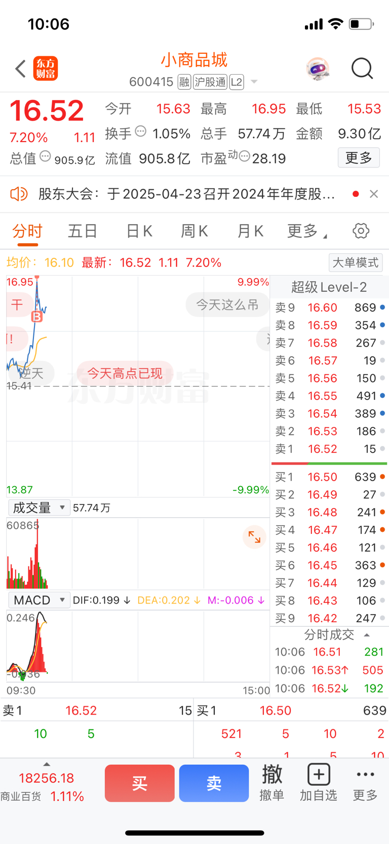 $小商品城(SH600415)$ 哈哈全仓挂山顶