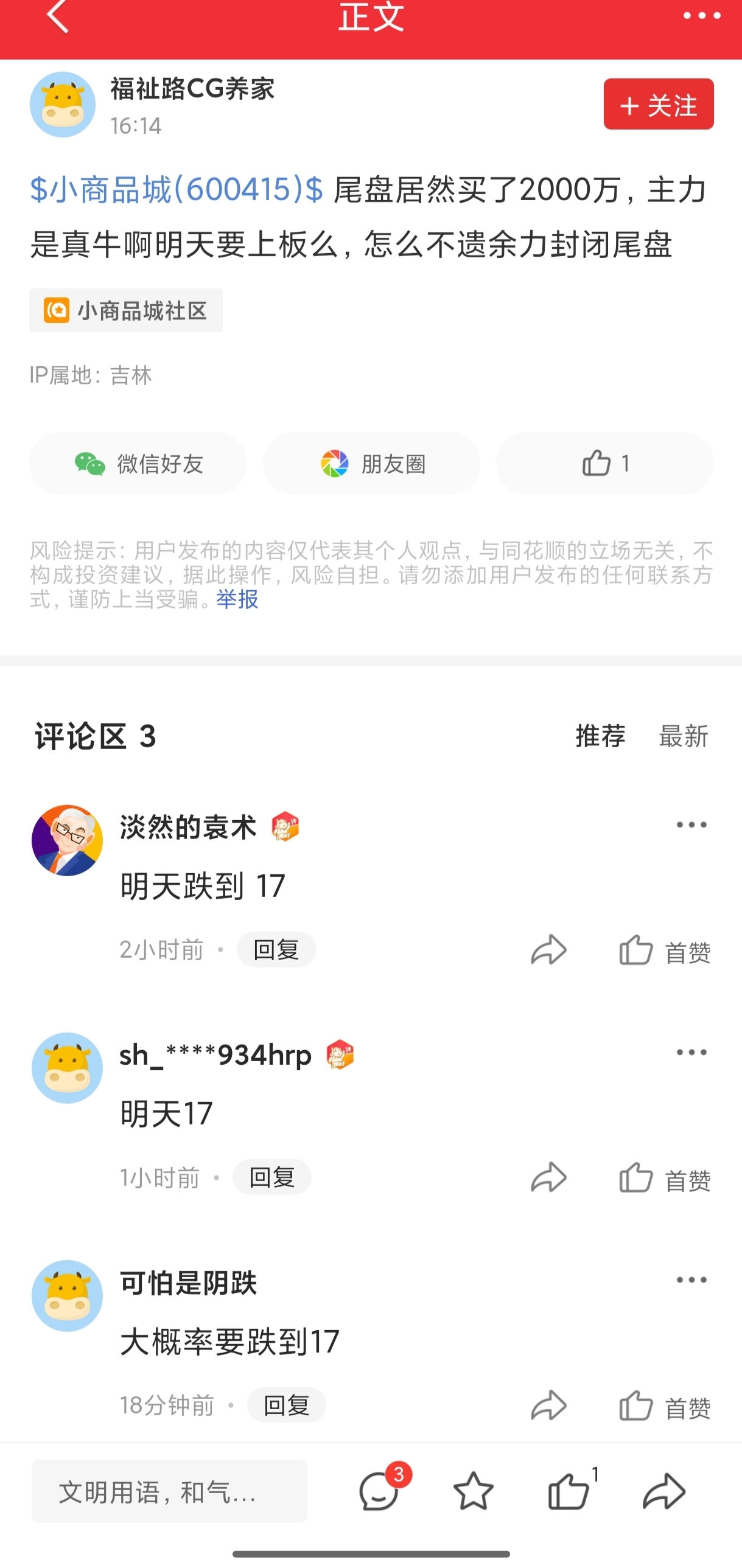 $小商品城(SH600415)$ 17要来了吗都看17了