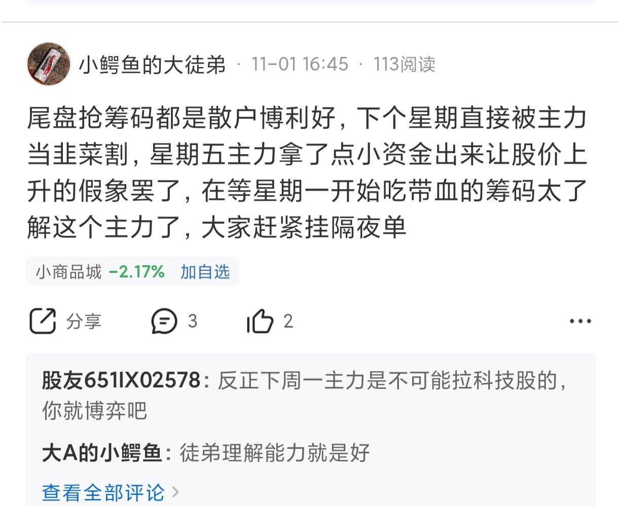 $小商品城(SH600415)$ 星期五叫大家挂隔夜单的挂了没,预测的对不对,说了今天会绿别不信