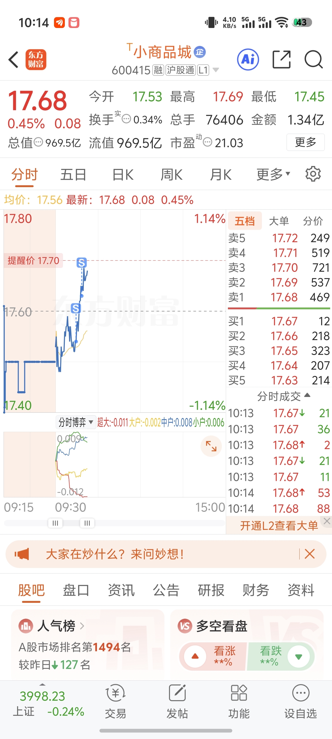 $小商品城(SH600415)$ 清仓了,涨停吧