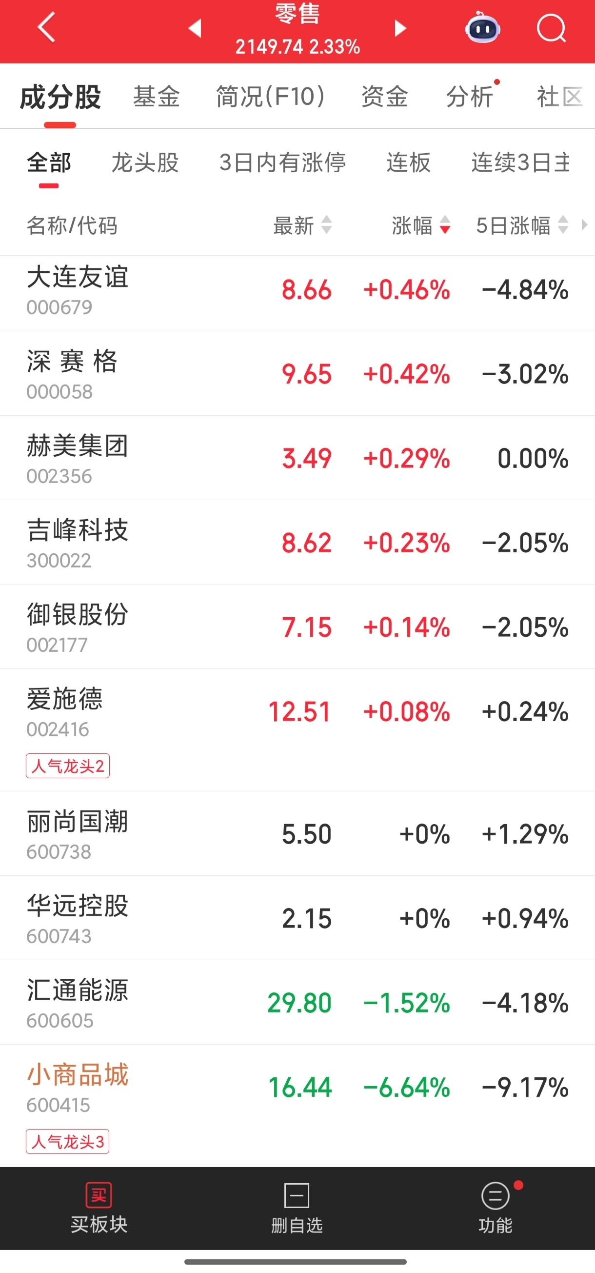 $小商品城(SH600415)$ 果然是龙头股最后一名,零售就2个绿,赶紧跑吧大家