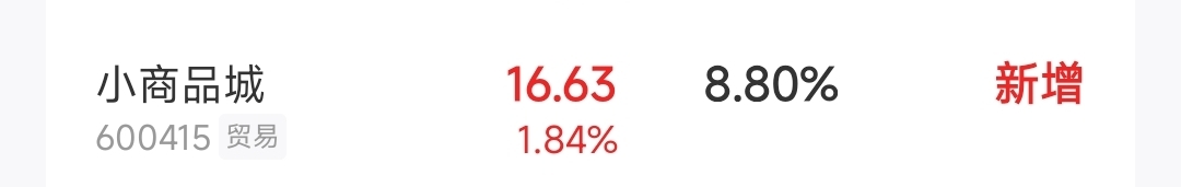 $小商品城(SH600415)$ 阿里巴巴概念+基金增持