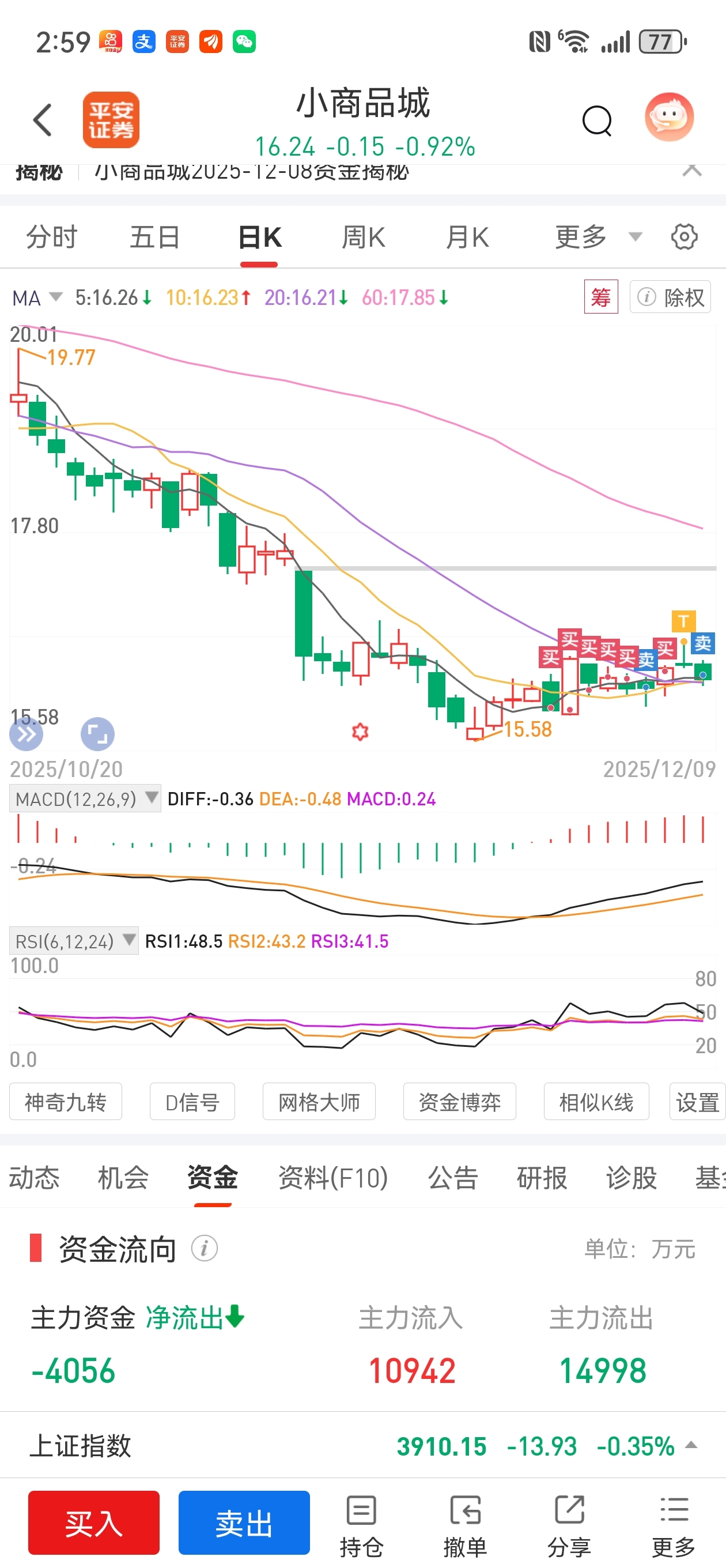 $小商品城(SH600415)$ 亏损果断割肉走了,加仓湘电股份,亏的都赚回来了,哈哈