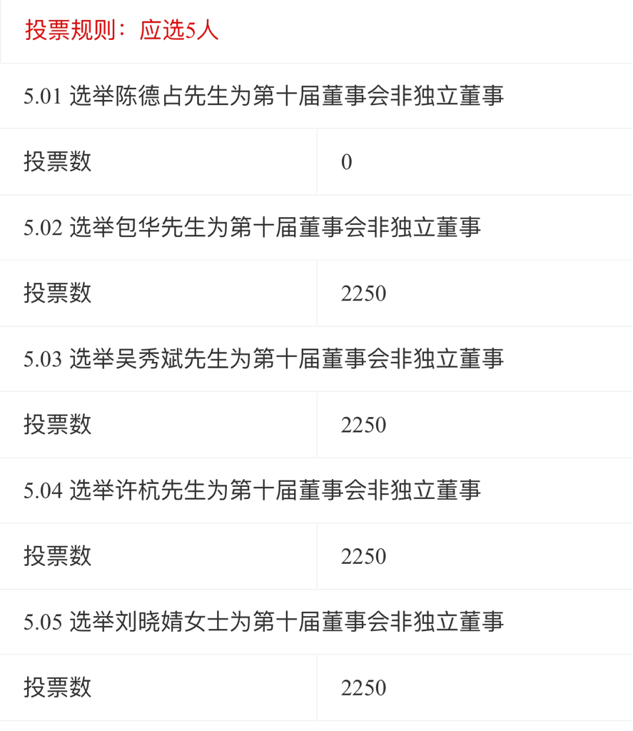 可投票数应该是持有股数乘5吧,反正陈德占你是一票都没有