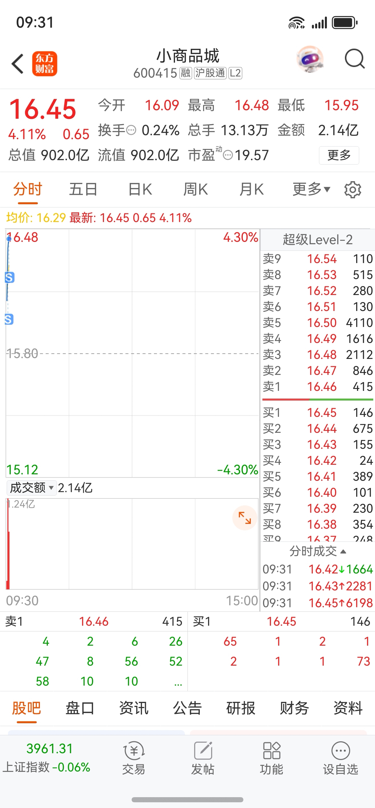 $小商品城(SH600415)$ 赚一个点已清仓!祝涨停!