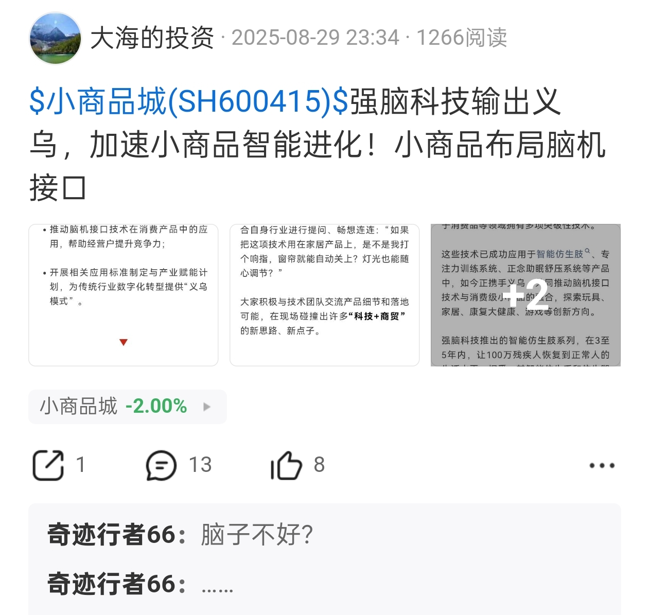 $小商品城(SH600415)$ 脑机接口大涨狗托如何解释?