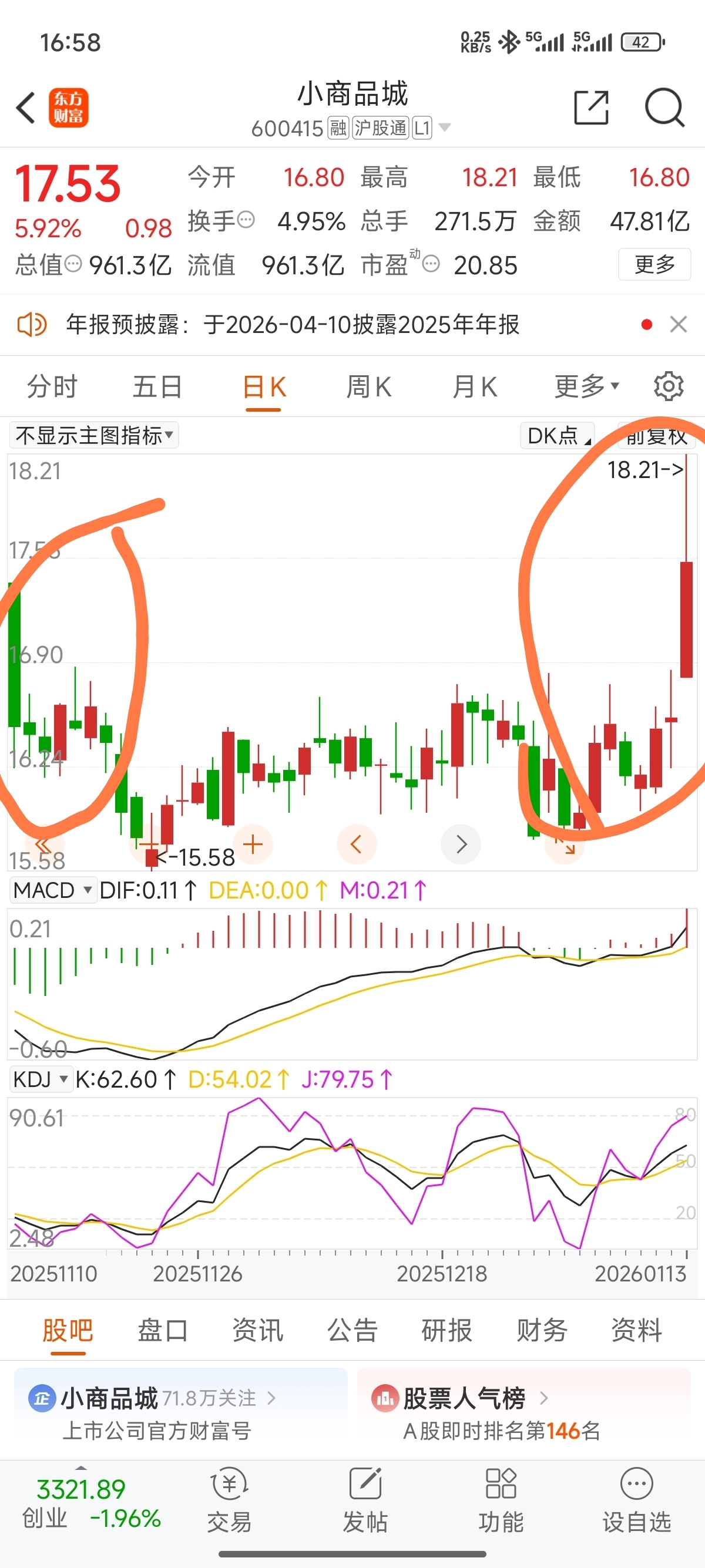 $小商品城(SH600415)$ 这叫双响炮,明确的上升信号,必须高举高打!
