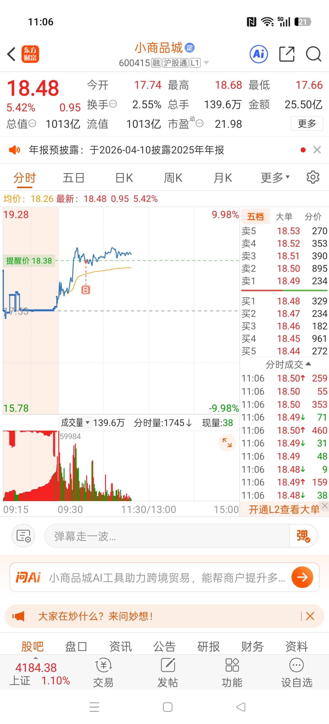 $小商品城(SH600415)$ 38的压力,我是正好买在这个位置,看能不能突出来