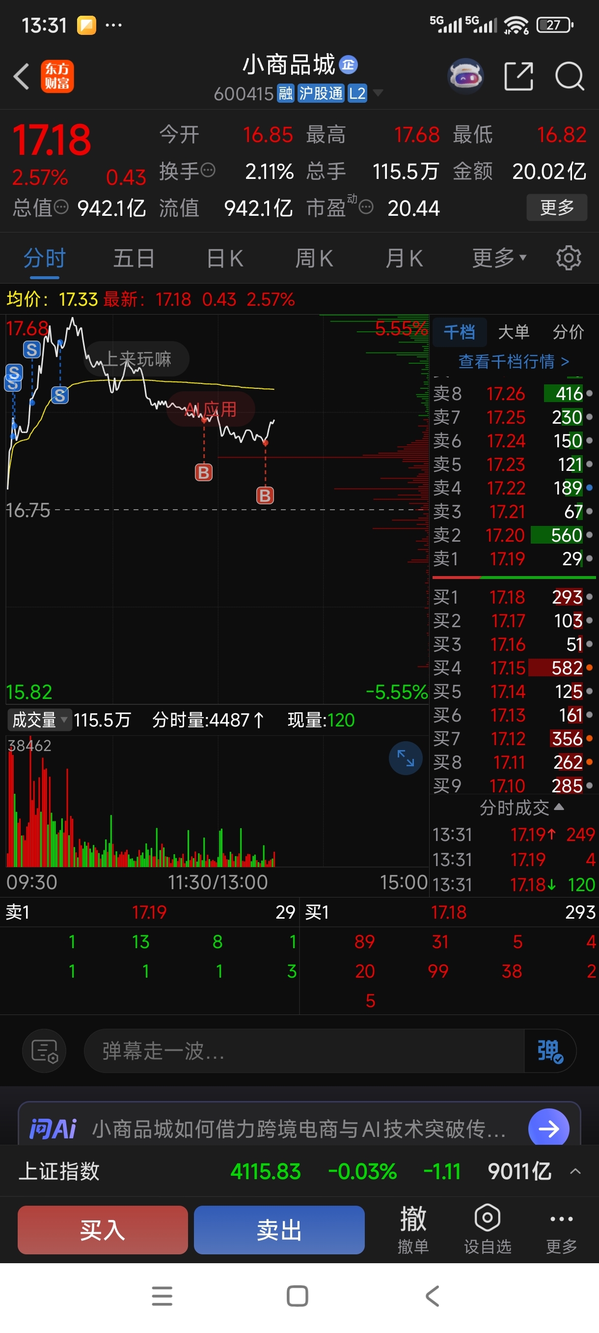 $小商品城(SH600415)$ 够庄,害劳资做T,很无奈