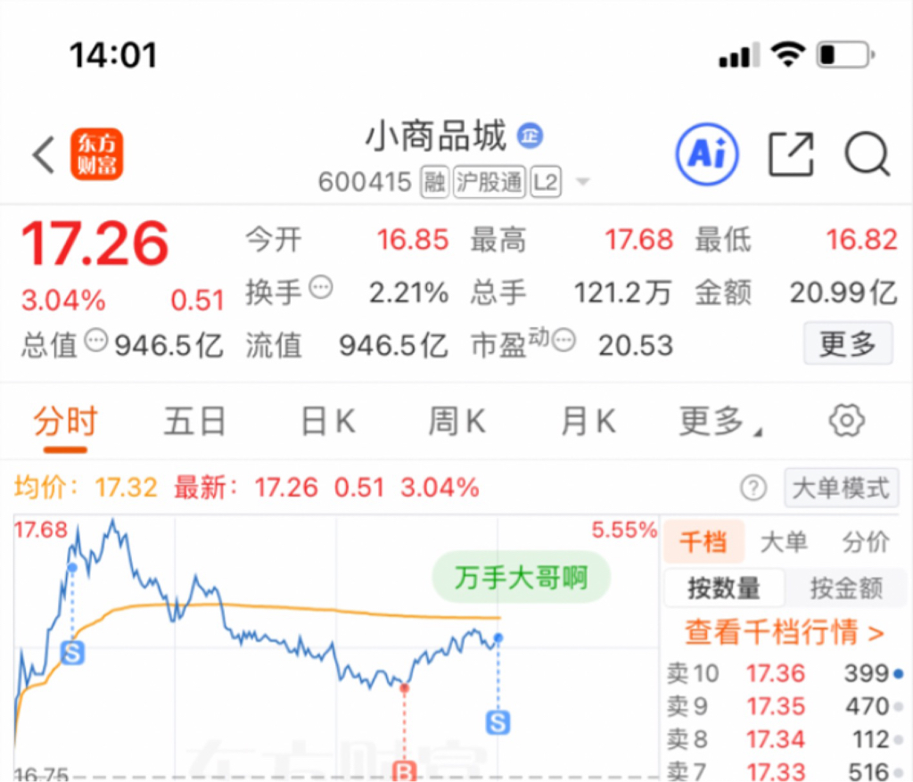 $小商品城(SH600415)$ 看了下,还是没量,稳点来