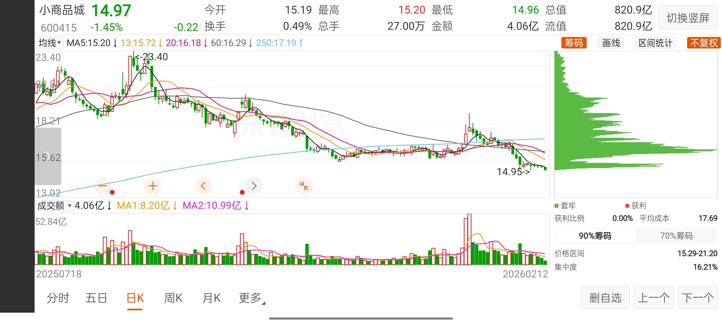 $小商品城(SH600415)$ 一个获利盘都没有,小商品里面的散户是遭了吗?还天天在跌