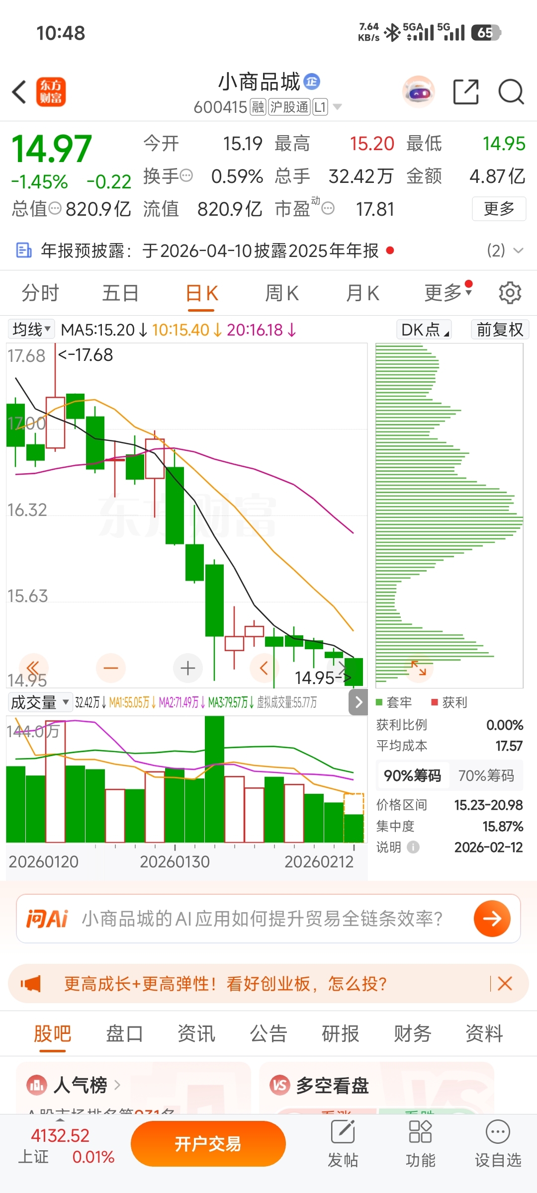 $小商品城(SH600415)$ 获利比例0%,天下奇观