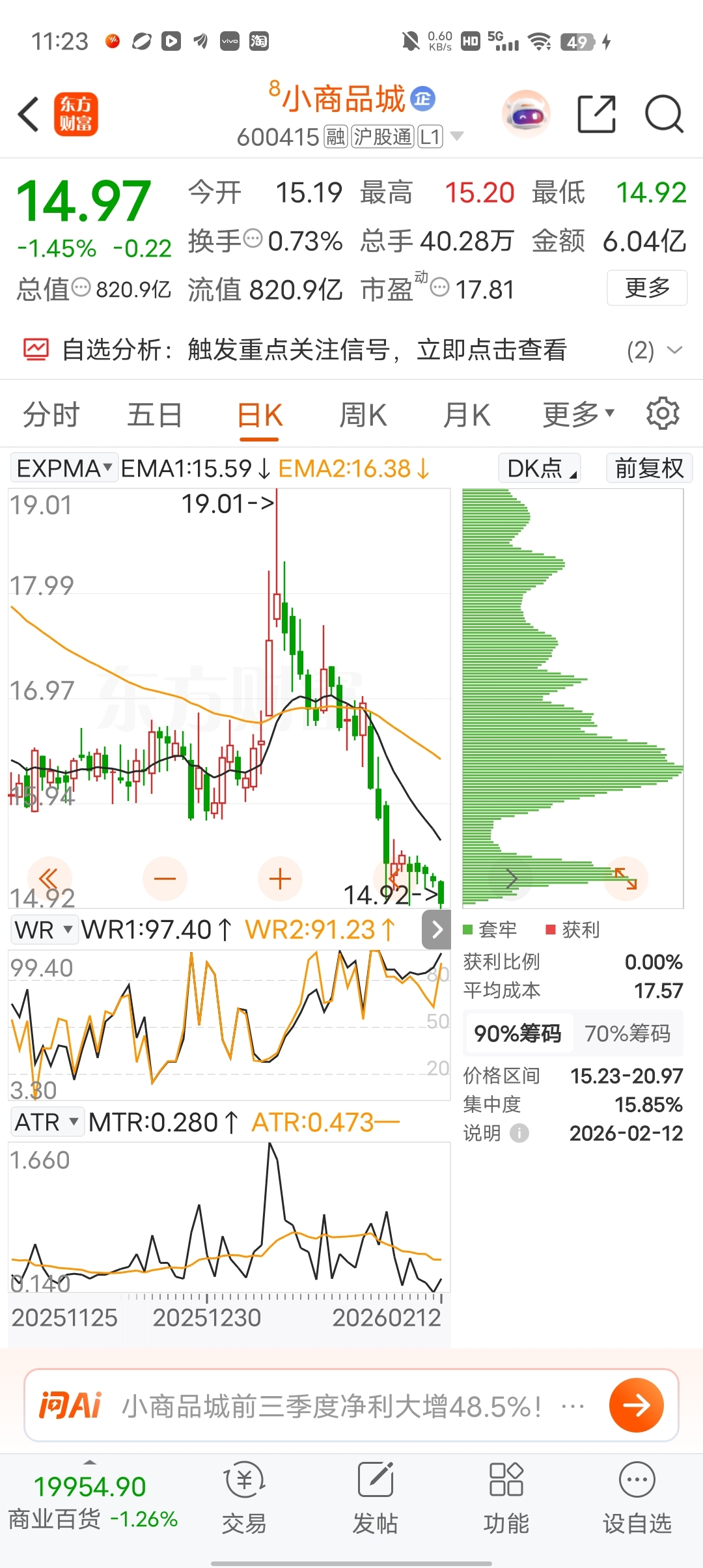 $小商品城(SH600415)$ 获利比例0,老庄真的很伟大,牛市砸出熊市气势